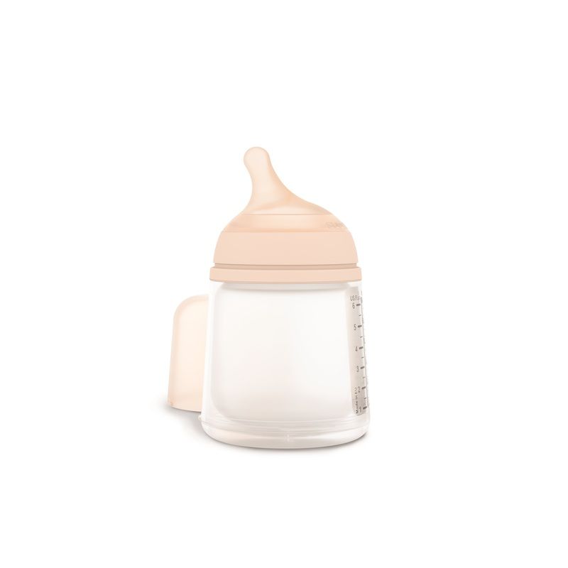 La tétine est révolutionnaire, conçue sur des études scientifiques, elle ressemble au plus près au sein maternel. Sa couleur chair, sa texture douce, son inclinaison et sa longueur permettent de minimiser la confusion sein-biberon.