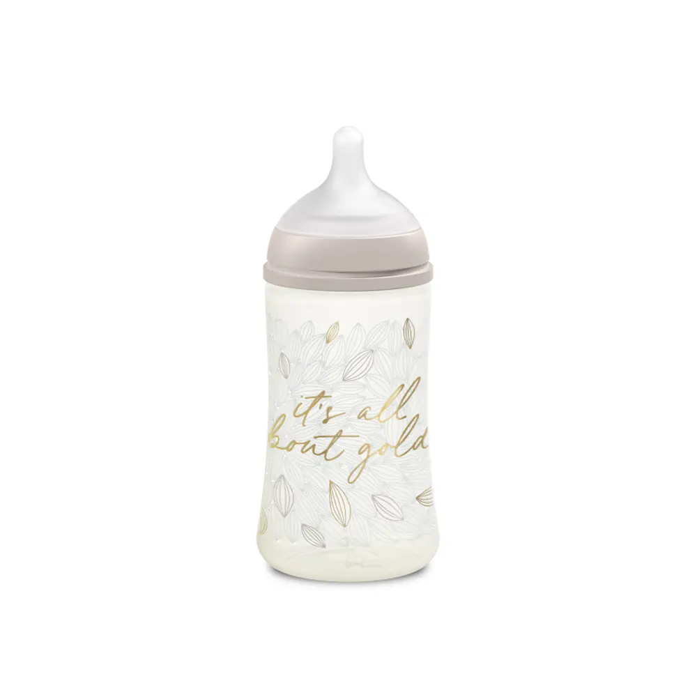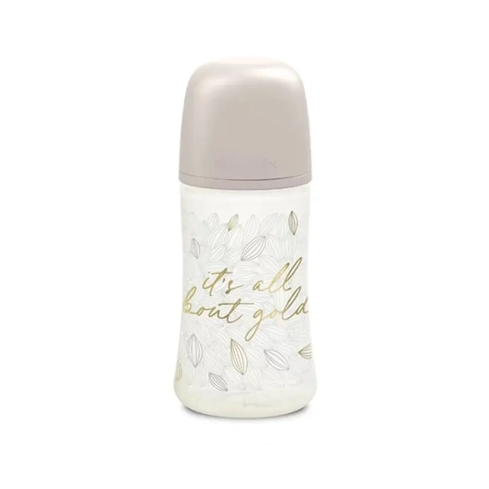 Ce biberon Gold Edition allie design élégant et praticité, offrant une solution de nourrissage optimale pour le développement de bébé tout en apportant confort et sécurité.