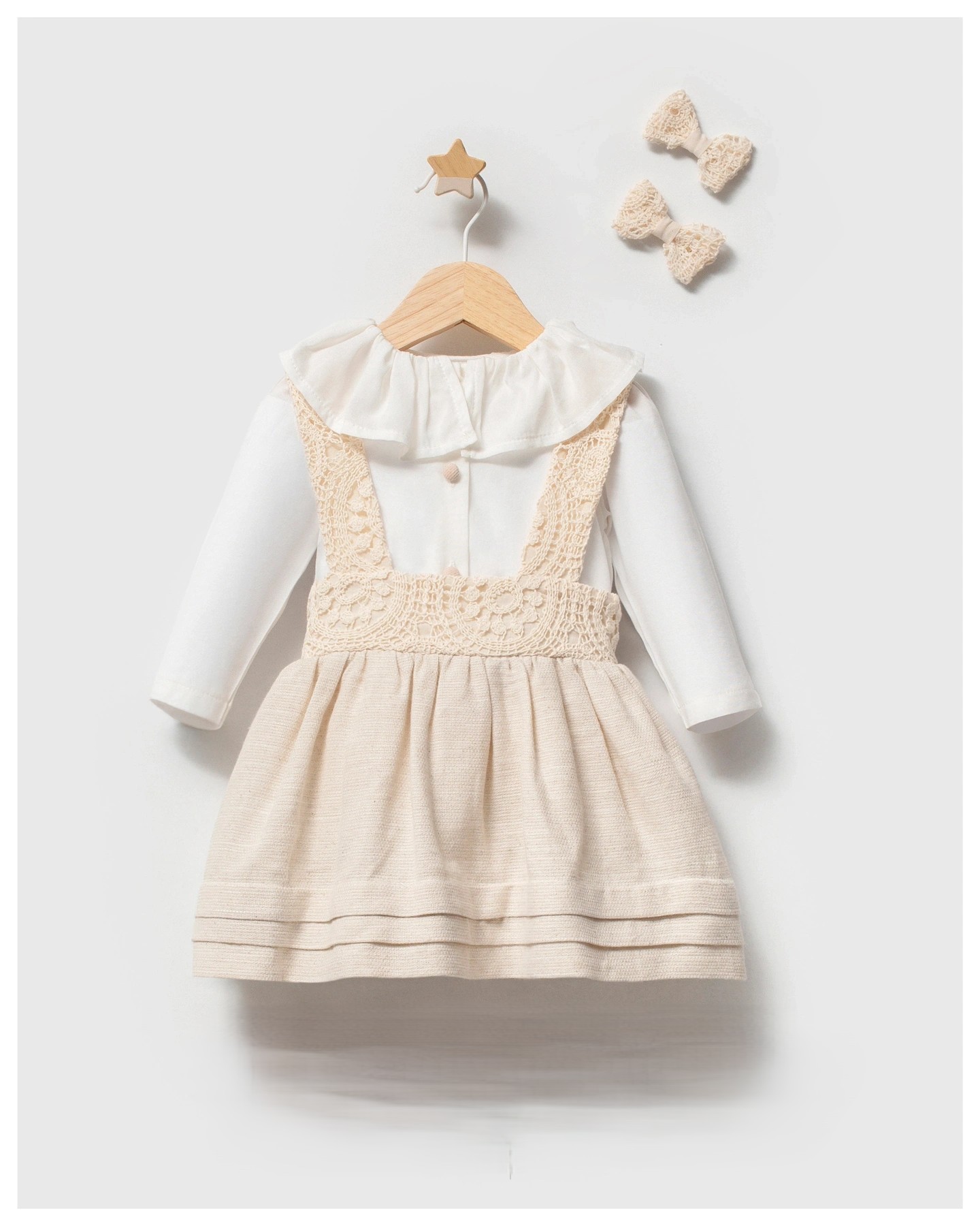 Accompagnée de ses barrettes assorties, cette tenue crée un ensemble harmonieux et plein de charme pour sublimer votre bébé.